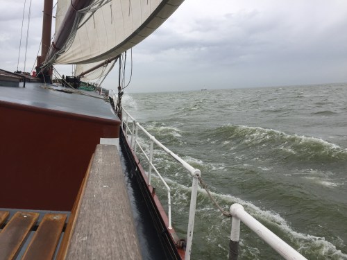 es hat sich zugezogen und wir laufen in wunderbarer Schräglage Richtung Medenblik. Die Mittagssuppe musste ausfallen, da die Schräglage zu groß war … aber es gibt Brot …