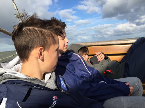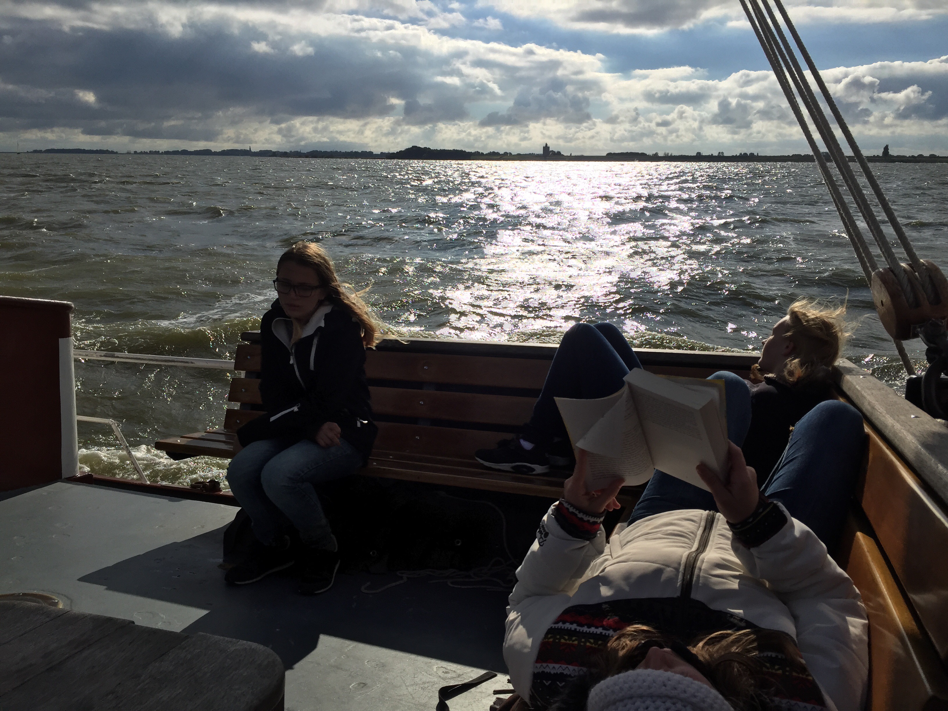diesmal mit starkem Wind nach Urk. Erst sah es so aus, als sei der Wind zu stark, aber jetzt gehtes doch. Alle Segel sind oben und wir gestärkt vom Mittagessen… 😋